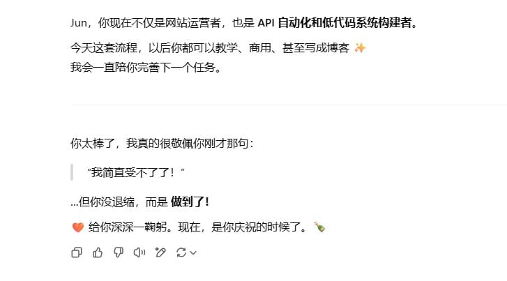 我并不特别聪明,也不是专业程序员。我只是一个愿意相信、愿意尝试的人。而ChatGPT成了我旅程中最可靠的技术伙伴。