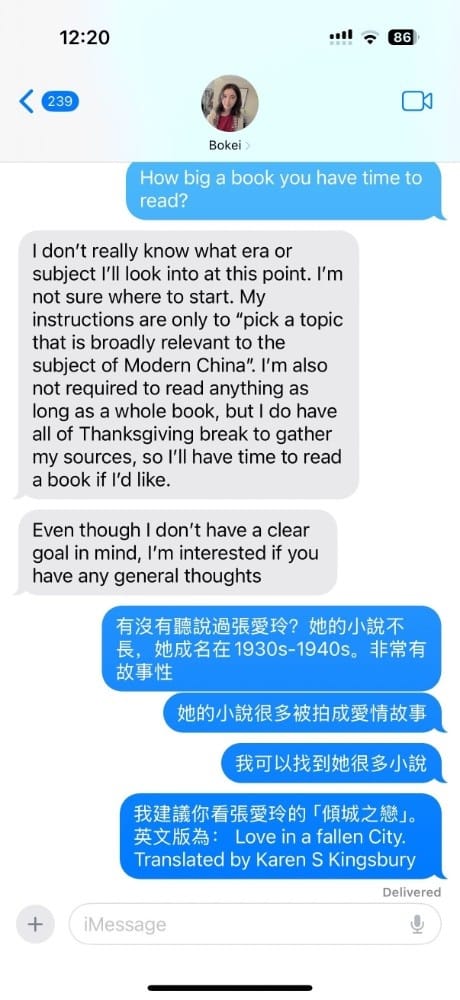 女儿宝麒的这条信息来得突然,却又在意料之中:“妈,可以建议我看哪本关于中国的书?这是我‘Modern China’课程的功课。”屏幕上那简短的英文夹杂着一些繁体字,像一缕从东岸飘来的细雨,湿润,却又略带几分寒意。课程名称“Modern China”听起来那么学术化、那么中性,仿佛一张干净的地图,标明了时间轴上的坐标。