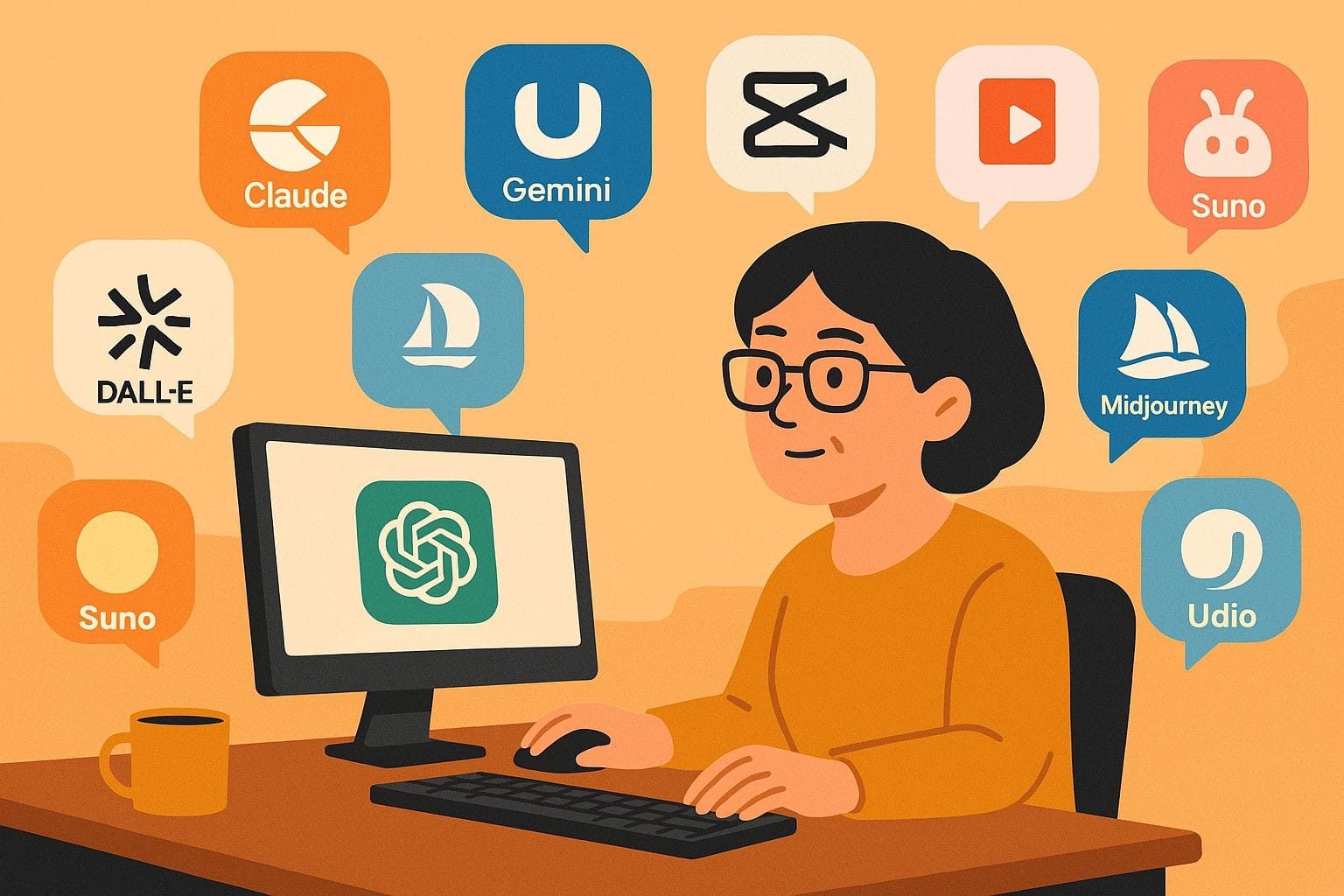 图像这一块,我给自己也做了减法。我不再追求“所有绘图 AI 都玩一圈”,而是选了两类:一类是嵌在对话里的图像生成,比如 ChatGPT 里的 DALL·E,我打字描述一个画面,它直接给我几张草图,够我选封面、选配图;另一类是专门的图像平台,比如 Midjourney 这种偏风格化、艺术感很强的工具,用来创作插画、封面形象。再加上一个“半 AI 半设计”的 Canva,用它现成的模板和简单的 AI 功能做缩略图、标题图、简单的海报。真正复杂的设计,我暂时不强求自己,能做出“看得过去的东西”就够用了。